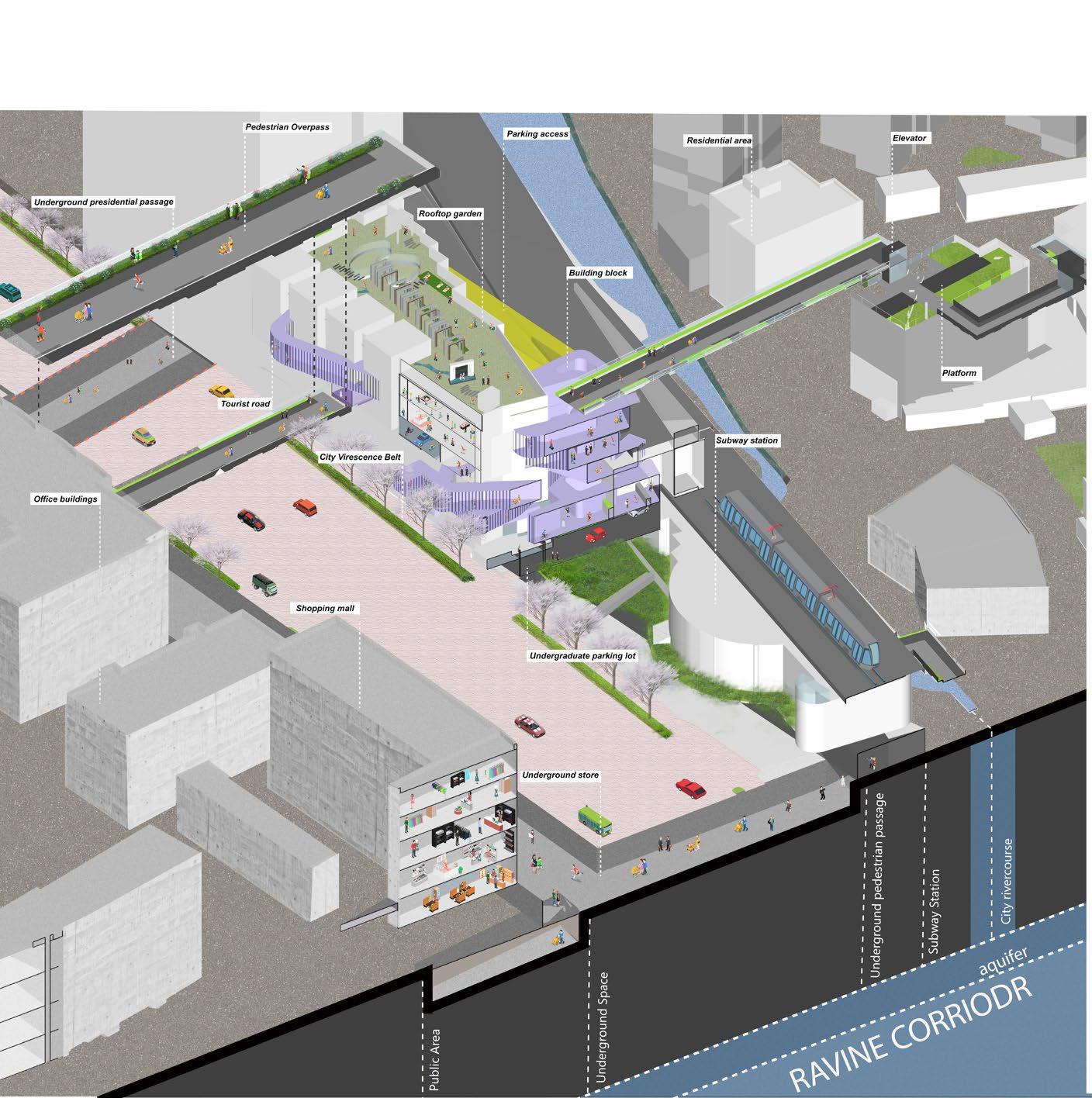 Qiao's existing resources, the design aims the community's daily life. The aboveencompasses parking facilities, commercial street arrangements, and bus station designs, all maximum community utility.