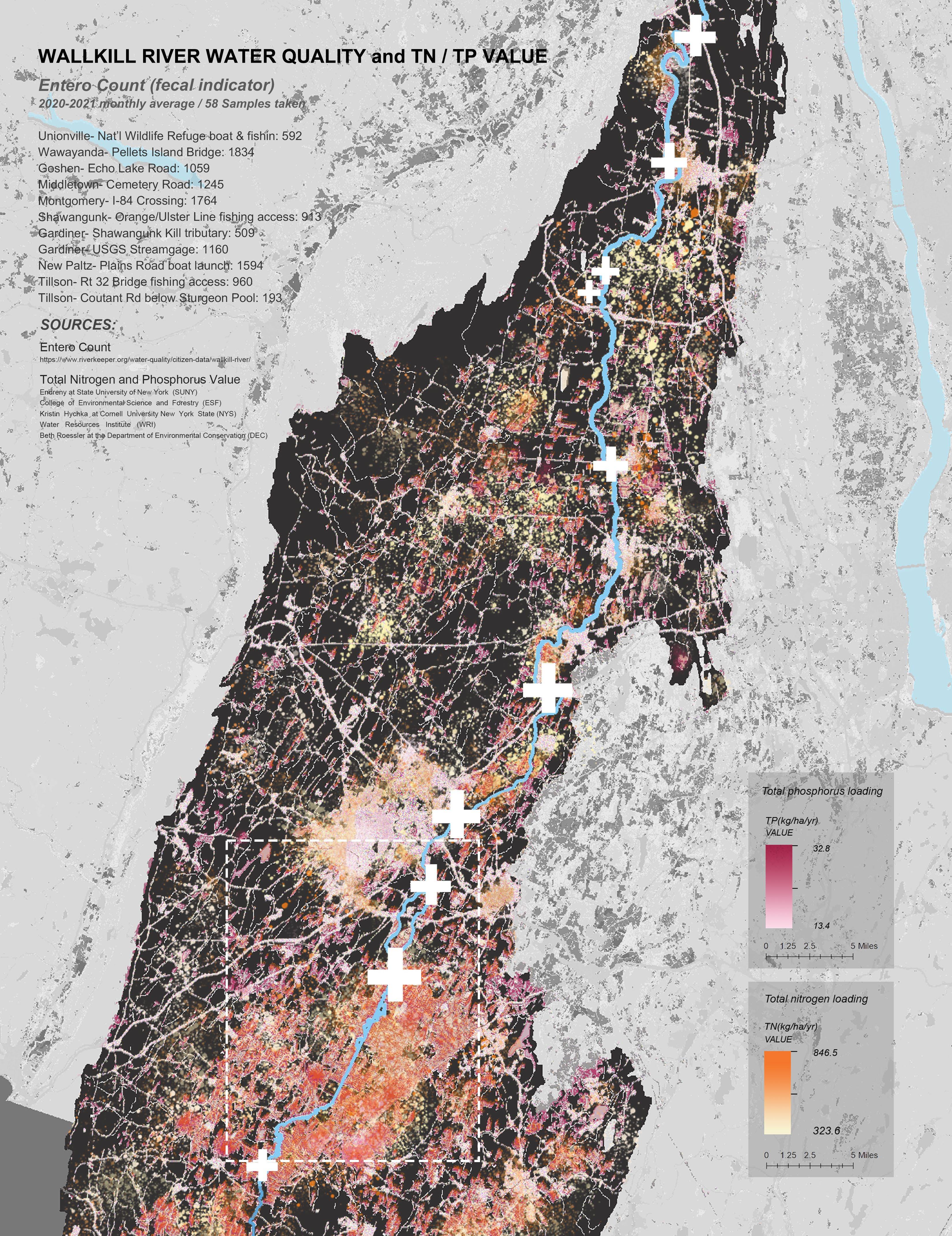 The Wallkill River, situated in the Black Dirt Region of the Hudson River estuary, suffers from the most degraded water quality among its tributaries. The pollution of the Wallkill River's water quality stems from various factors, with a significant factor being the unchecked dumping of animal excrement containing elevated levels of nitrogen and phosphorus into the water. Analyzing river water monitoring data alongside nitrogen and phosphorus concentrations highlights a clear trend: areas surrounding these farms exhibit markedly higher levels of these contaminants compared to other regions. This correlation underscores the direct link between heightened nitrogen and phosphorus concentrations and th