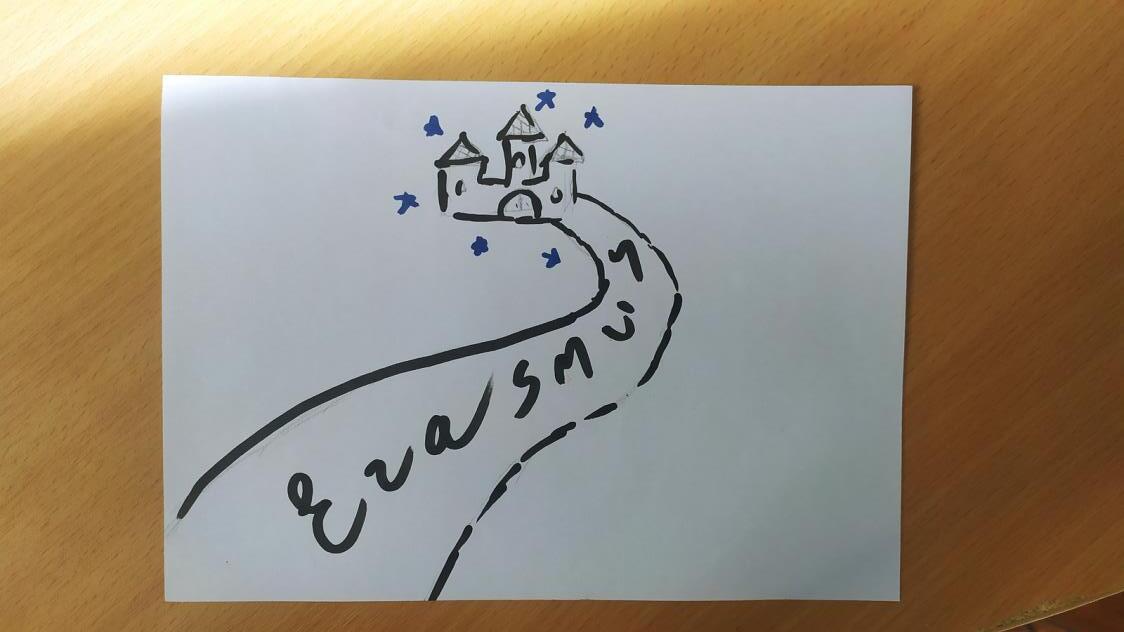 Our logo represents the Erasmus+ projects. The “m” shows 3 people standing together, which shows how happy they are to participate in these projects. It means that Erasmus is uniting people, bringing ideas together, exploring different cultures, etc.