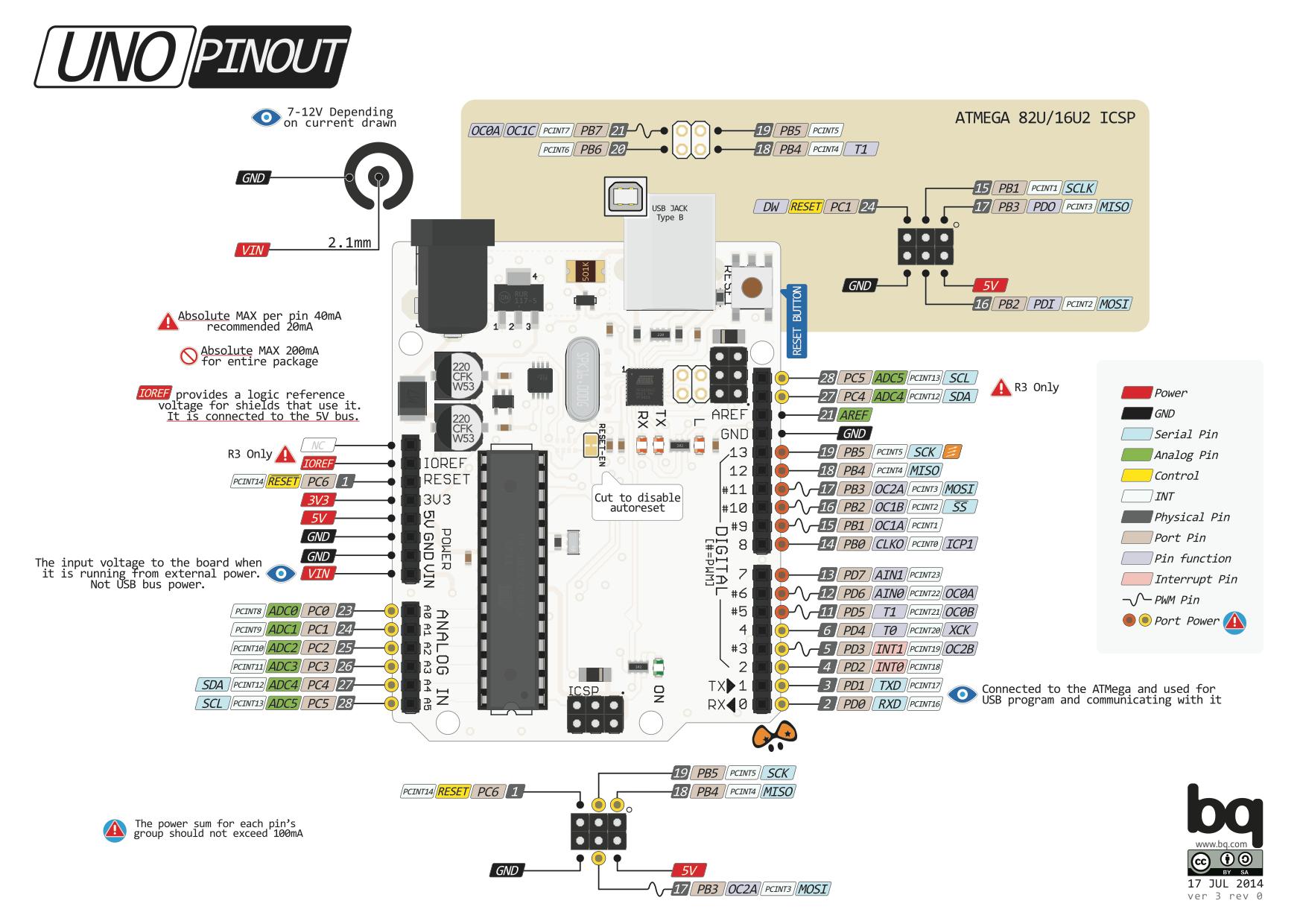 By Philliptorrone - Own work, CC BY-SA 3.0, https://commons.wikimedia.org/w/ index.php?curid=19269741• LED: There is a built-in LED driven by digital pin 13. When the pin is high value, the LED is on, when the pin is low, it is off.