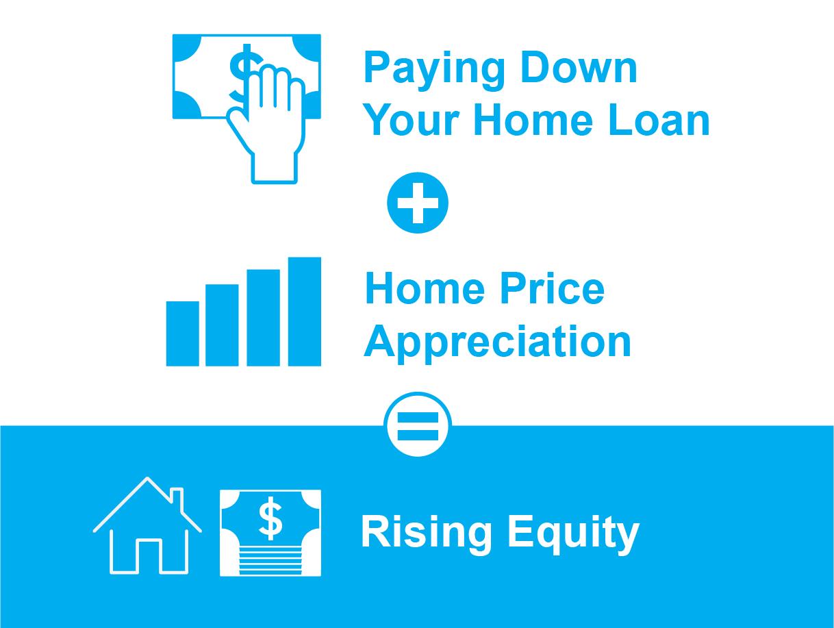 Over time, you build equity as you make your monthly mortgage payments and as home prices appreciate. It works like this: