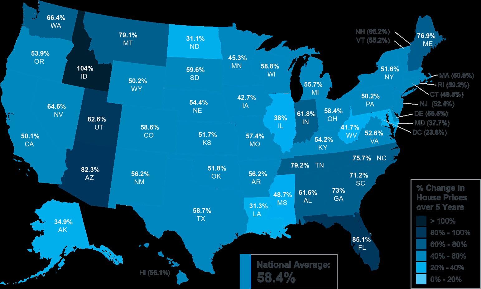 While that’s the national number, if you want to know what happened over the past five years in our area, look at the map below from the Federal Housing Finance Agency (FHFA). It shows how much home prices have risen recently, and that’s been a major driver behind equity growth.