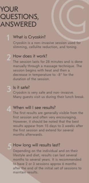 “Available here at Syracuse Silhouette, CryoSkin is a revolutionary treatment from Italy that uses hot and cold massage to permanently destroy fat cells, while toning and tightening skin.”