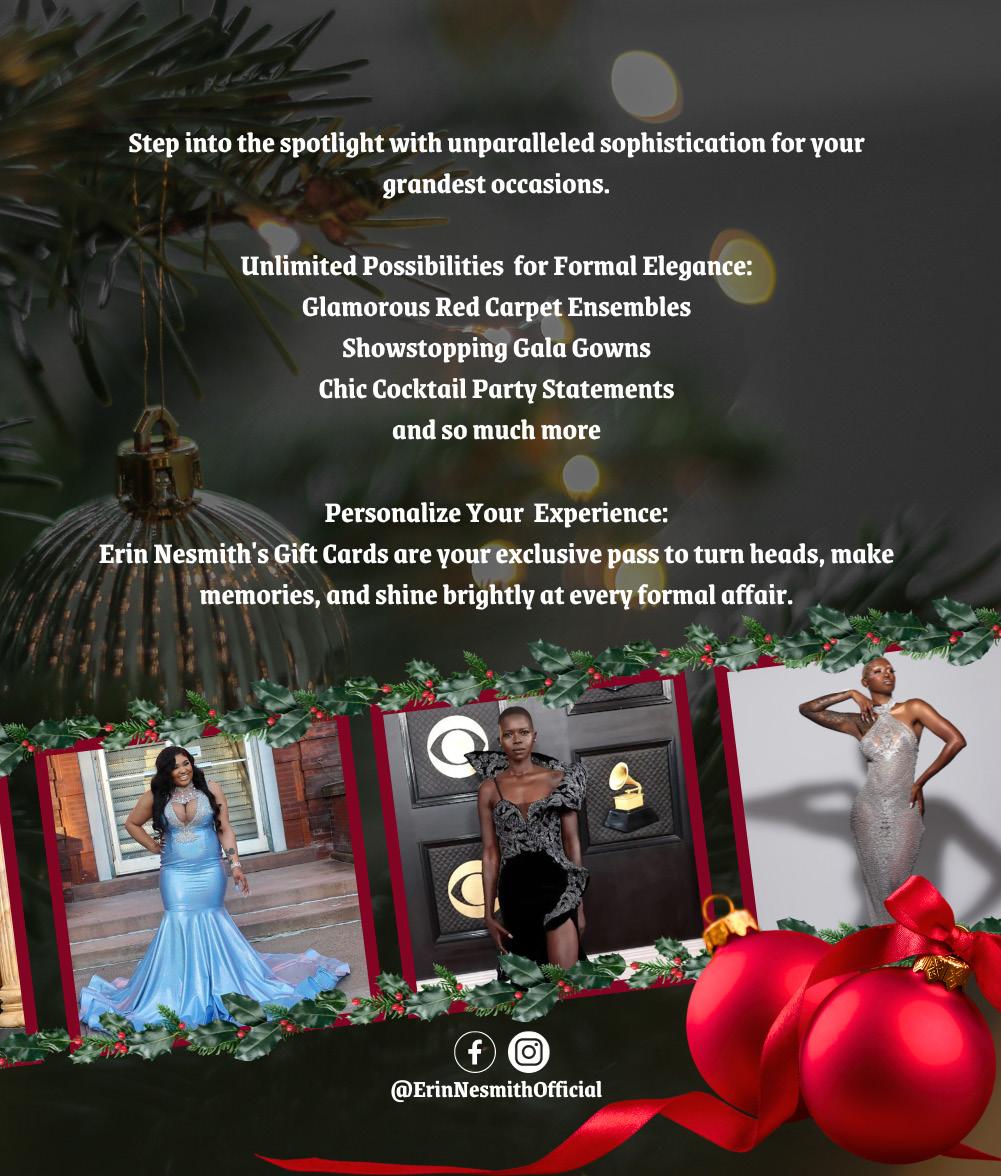 The inspiration behind the mission of Erin Nesmith as a brand that signifies stepping into one’s purpose is deeply rooted in a personal journey of selfdiscovery and empowerment. Growing up, I navigated the twists and turns of life, facing moments of self-doubt and uncertainty. It was during these times that I found solace and strength in the world of fashion.