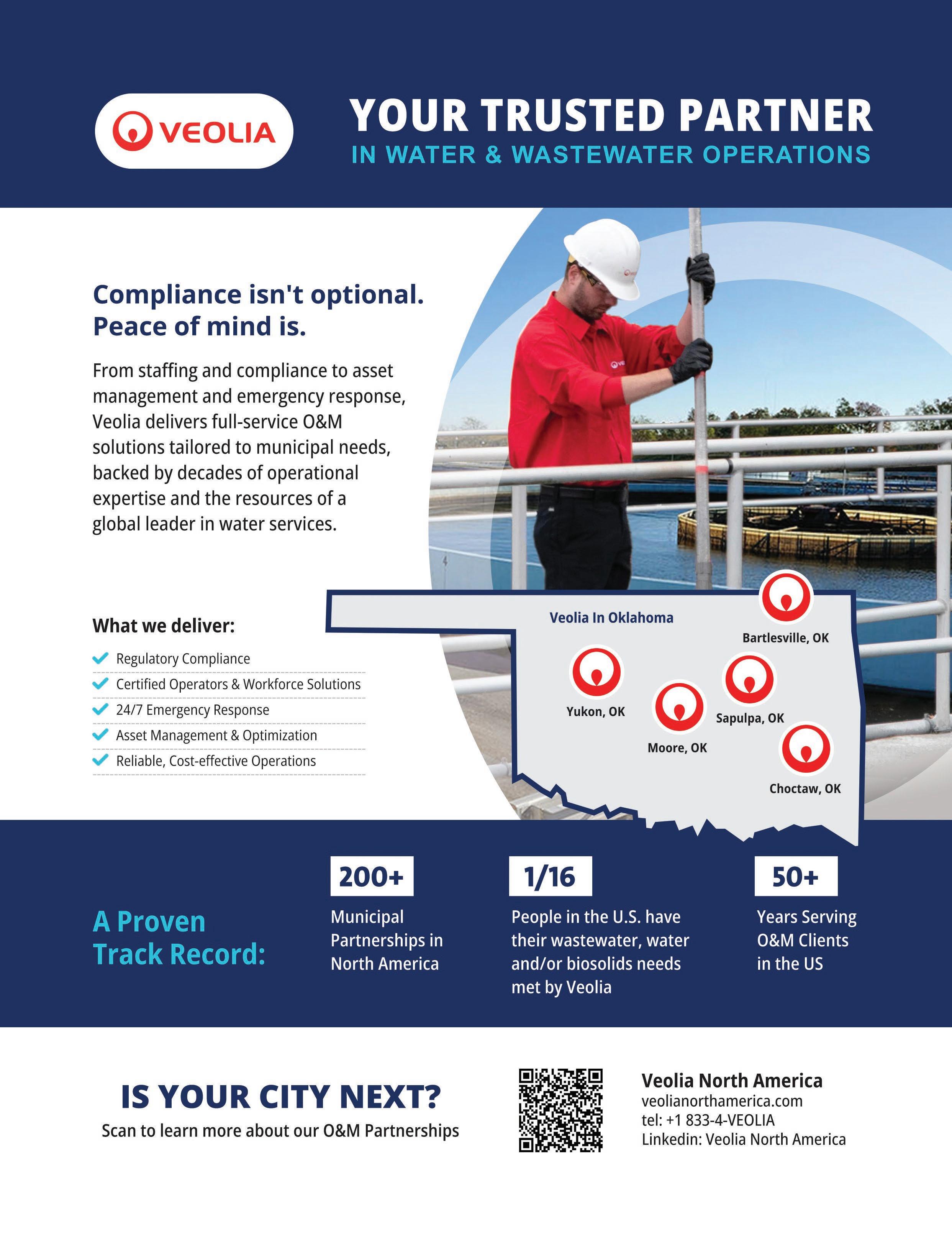 Inframark is a trusted water and wastewater operator that has supported Oklahoma communities for years and is the largest American-owned, dedicated contract O&M company in the country, managing over 550 wastewater and water infrastructure systems in 30+ states.