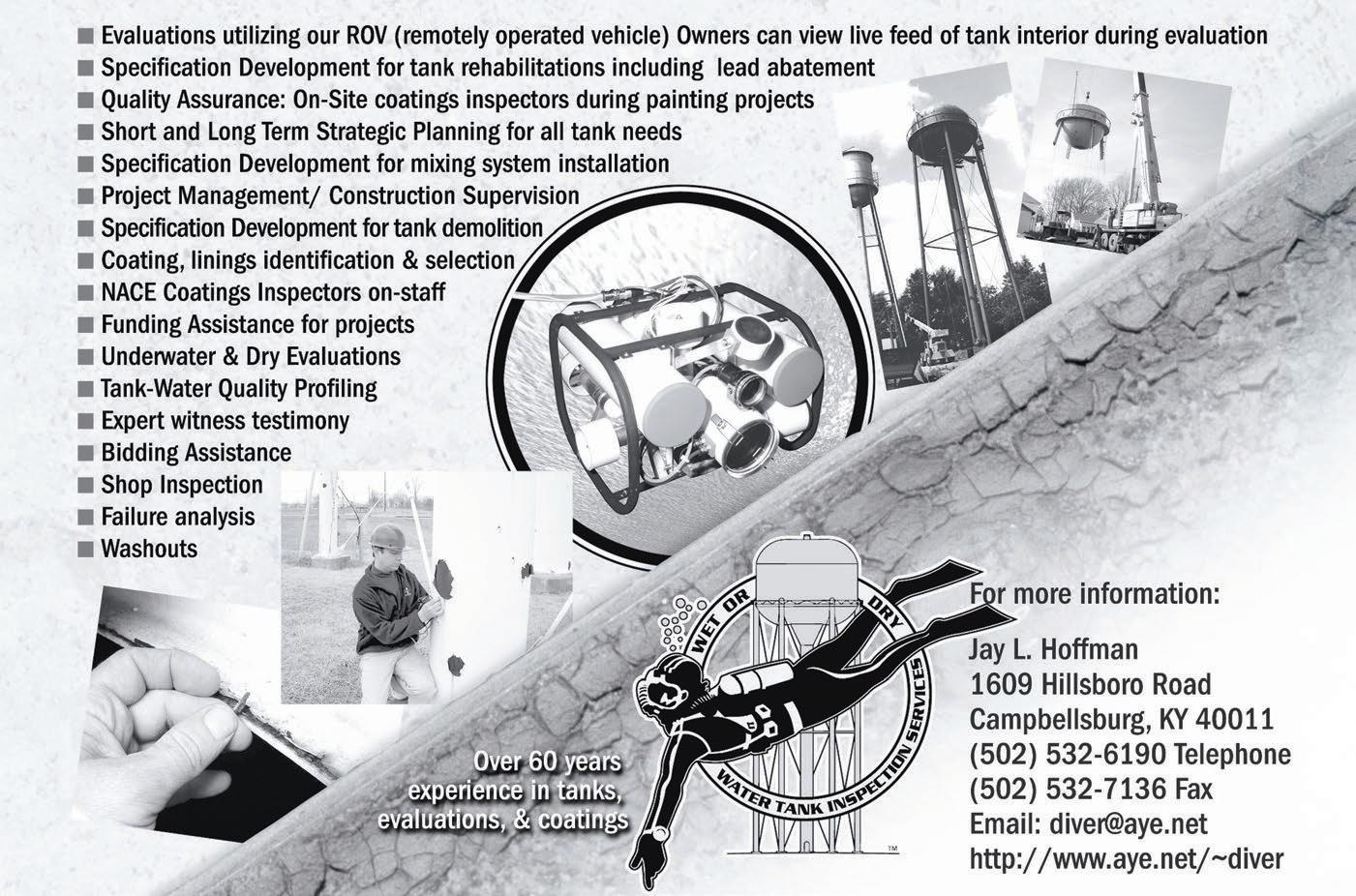 Wet Or Dry Water Tank Inspection Services 24 502-532-6190 www.aye.net/~diver