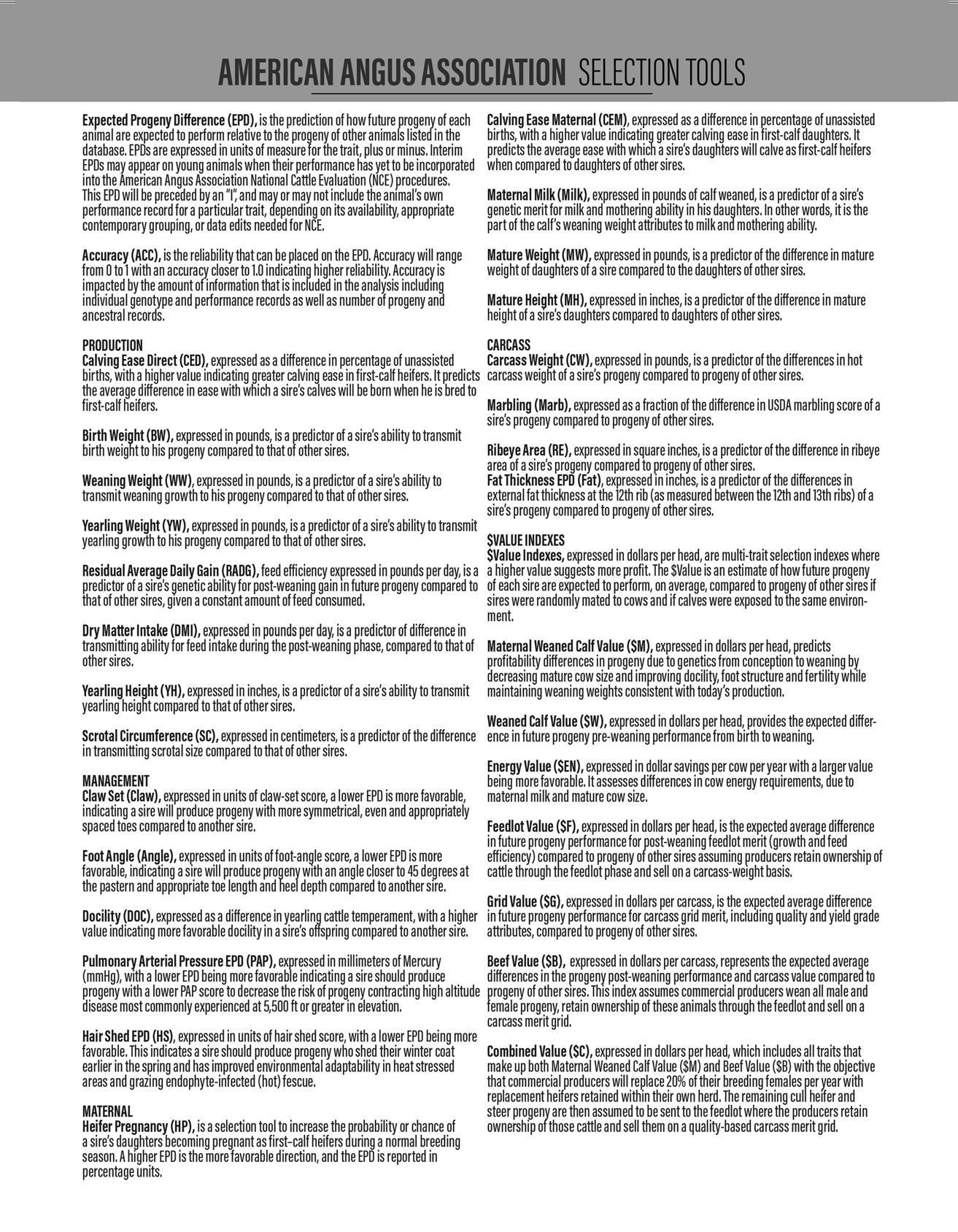 Bulls have been DNA tested using the AngusGS test. You can visit www.angus.org and use the “Animal Search” bar for expanded EPD profiles, or call Les for more information.