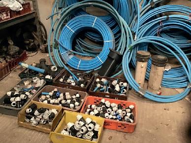 £400. Rolls of various size pipe, over 150 couplings 25 18 12 mil.