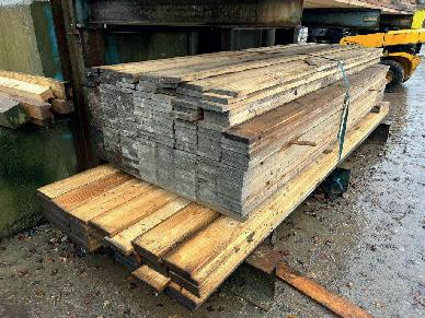 POA. Discoloured timber, sold in packs or will split, various lengths, and sizes mainly 1'' boarding ideal for barn cladding can be collected from Crowborough, East Sussex or can arrange delivery