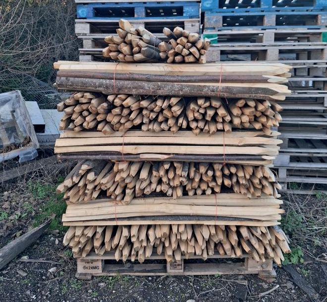 £8/bundle or £250 for the lot. 32 bundles of 20, 4ft tree stakes. Buyer collects.