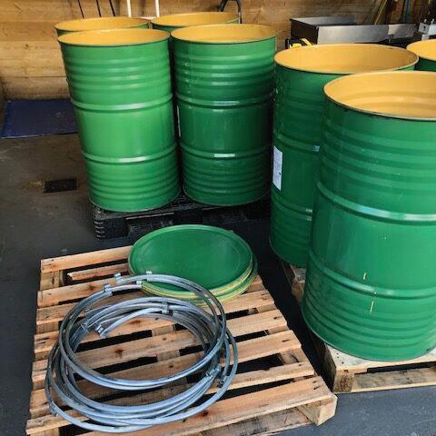 £30 each +VAT. 200 L, Food Grade, with lids and bolts to seal. 8 units available.