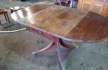 £50. Solid table, drawer underneath, solid, just needs re varnish, ornate legs, width 138cm extended, 94cm depth and 75cm height. Collection Mon to Fri 8am – 4.30pm.