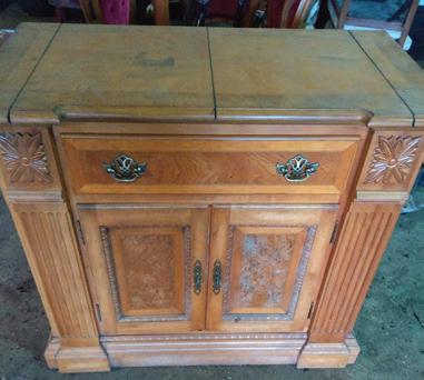 £60. Solid wood, shelf in cupboard and lined drawer, in need of re varnish 50cm depth, 99cm width, 90cm tall