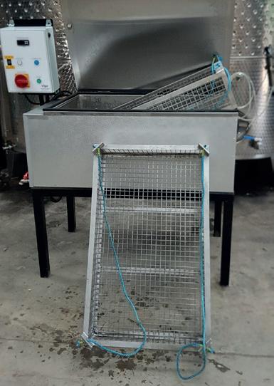 in bottle pasteuriser. Holds 100 x750ml bottles per batch. Complete with stand and cage for bottles. 3 phase. Condition as new. 2 available.