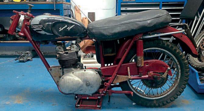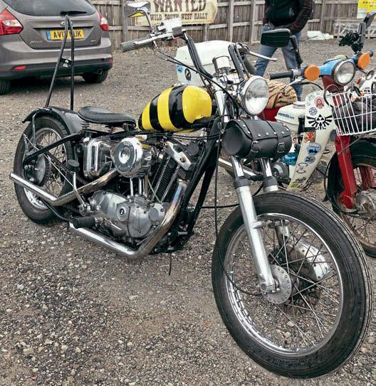 “Another long trip down to Eastbourne was a nightmare – again, vibration was to blame. I have a smart USB charger feeding a Quad Lock mount on the ’bars for my speedo/nav and, at the time, I had an old Lucas-style ignition. e smart USB turns o automatically if the battery voltage drops too low, and I’d done around 100 miles when I realised my phone wasn’t charging. Luckily, it was just a loose connection on the ignition itself (the wire’d vibrated o ) but, as I was now behind schedule, I pushed my luck with the fuel range, and ran out somewhere on the M6. I pulled over to the hard shoulder (with big juggernauts thundering past me), and used my spare bottle (always carry a fuel bottle) to get me to the next services, but the bike wouldn’t run right. I thought I’d pulled crap down from the tank so dropped the oat bowls, but they were all okay, so changed the plugs – still no change. I limped it further down the road, but she was kangarooing badly, and it was getting dark, and I had no headlight. Luckily, Mike and Euan were behind in a van, so I admitted defeat and loaded it in. I spent hours on the Saturday going over everything, and found a bad coil connection, xed it, made the Sunday ride-out no problem, and even won a prize. She still wasn’t right though – conked out again halfa-dozen times between the stage and my tent, so another sleepless night, a long way from home with a poorly bike. It took een hours to nurse her home, shepherded by Matt (with bike problems of his own, and still three hours to do a er we went our separate ways) and, long story short, it was the ignition contacts themselves – they’d rattled to bits, and were making and breaking contact all the time, one of those massive pain-in-the-arse faults that takes forever to nd. It’s since been booted over the neighbour’s fence, and I’ve tted a keep-it-simple-stupid set up with push-button start.”