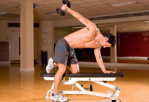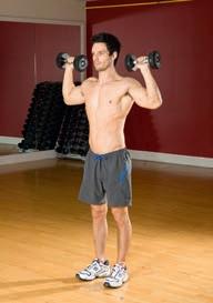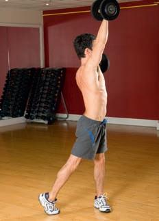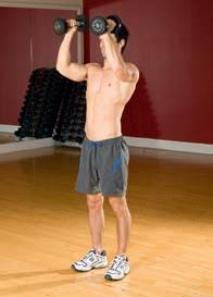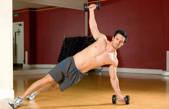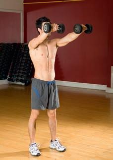 Combine pressing and rotating the shoulders in one move – don’t overdo the weights while performing