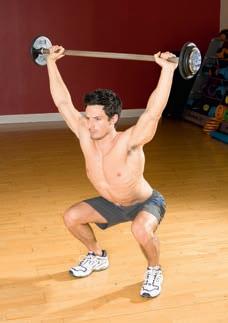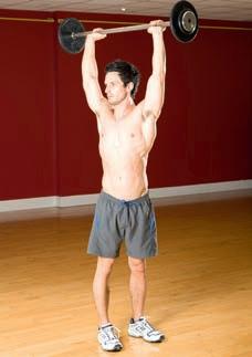 Work your front, middle and rear shoulders, as well as your legs, back and core with this compound movement.
