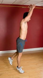Hold a light bar over your head with straight arms