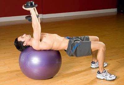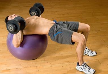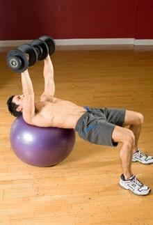 Lying on a Swiss ball means you have to stabilise your entire body, which helps to build a stronger foundation from which to improve your bench presses.