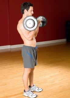 With dumbbells, you work both arms evenly, unlike the barbell curl where your stronger arm can take more of the strain.