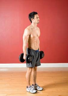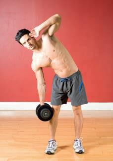 instructions saying ‘brace your core muscles’ or ‘hold your core tight’. This means you should contract the muscles around your midriff – especially your abdominals – to stabilise your spine while doing lifts. To do this, start by ensuring that you are standing or sitting up straight, with your hips in line with your torso. Now imagine that someone is about to punch you in the stomach and you have to tense your abdominal muscles to take the blow. Maintain that contraction throughout the move,