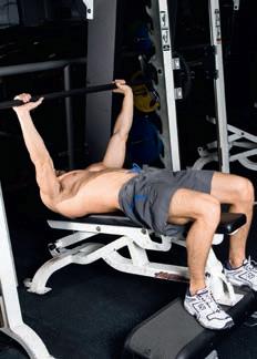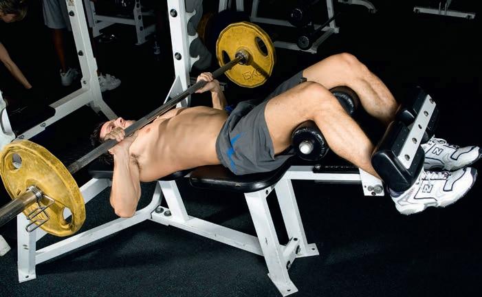 Get a training partner to help you lift the bar into the ‘up’ position, then lower it as slowly as you can with good form. Focusing on the eccentric (lowering) phase allows you to use heavy weights and has great potential for muscle growth.