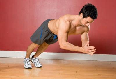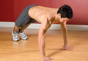 Jump your hands backwards and forwards while doing shallow press-ups, to hit your muscles from different angles.