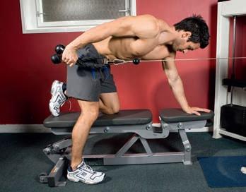 Give your core a workout by holding your body upright during the row. This takes some of the stress off the lats and places it on the rear deltoid.