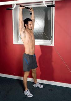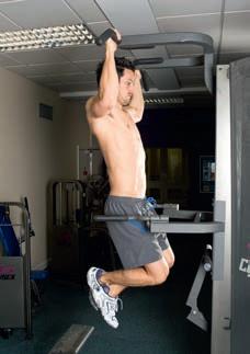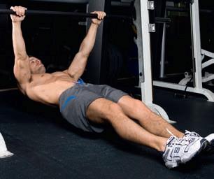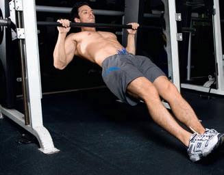 Work against your own bodyweight in this classic test of strength. The overhand grip ensures most of the work is done by your back and not your arms. Target: lats, traps, rhomboids