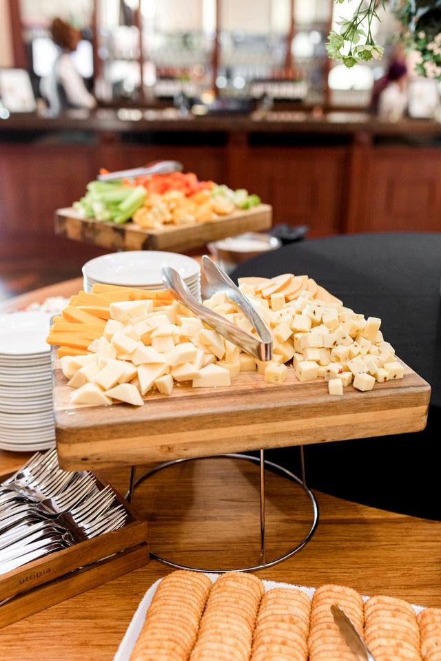 Scrambled Eggs, Applewood Smoked Bacon, Cinnamon French Toast, Bagels with Cream Cheese, Assorted Mini Breakfast Pastries, Build Your Own Parfaits, International & Domestic Cheese Board with Seasonal Fresh Fruit & Crackers, Fresh Baked Rolls with Butter, Mixed Field Greens with two types of dress