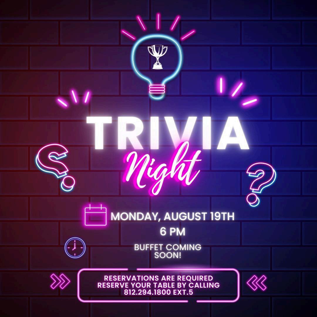 Get your thinking caps on! Join us for Trivia Night at Champions Pointe on Monday, August 19th, starting at 6PM Don't miss out on the fun – reservations are required! Stay tuned for exciting buffet options coming your way