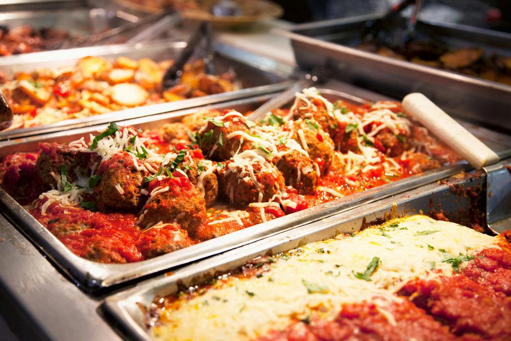 A hearty spread of classic meatballs, chicken alfredo, penne pasta, Caesar salad, garlic bread, and seasonal vegetable. Cannoli included for dessert. Crab Cakes add-on available $8