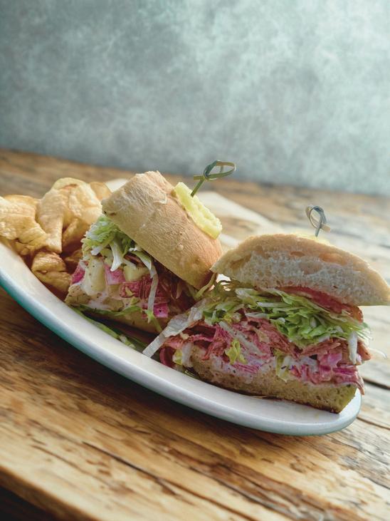 Enjoy a mix of gourmet bread and wraps with a variety of proteins served with chips, seasonal fruit, pickles, and fresh-baked cookies.