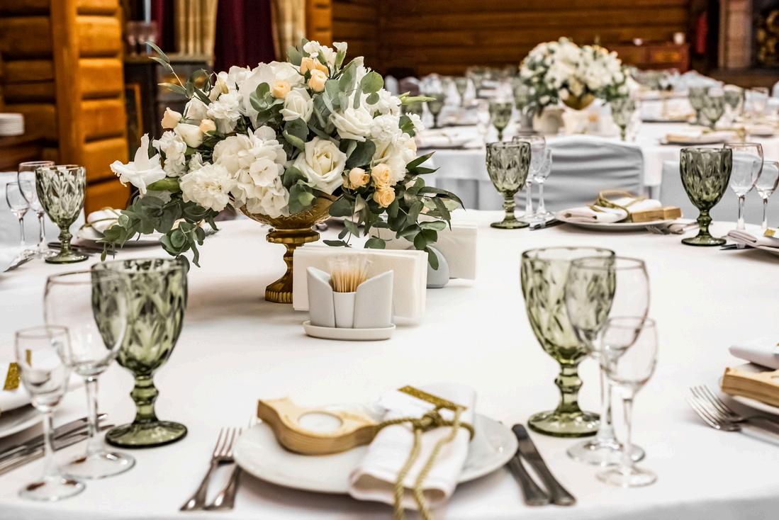 Post round banquet tables and decor