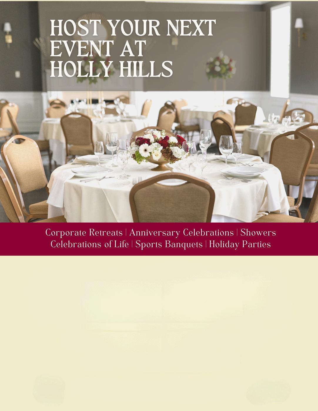 By embracing the KemperSports TrueService initiative, the Food & Beverage team at Holly Hills Country Club is creating a dining experience that goes beyond providing just impeccable cuisine We're crafting a place where members and guests feel valued, welcomed, and happy to return for another round of smiles and satisfaction. So come on in and see how we’re serving up smiles; we cannot wait to see you at the club!