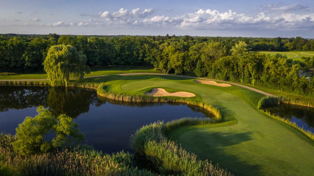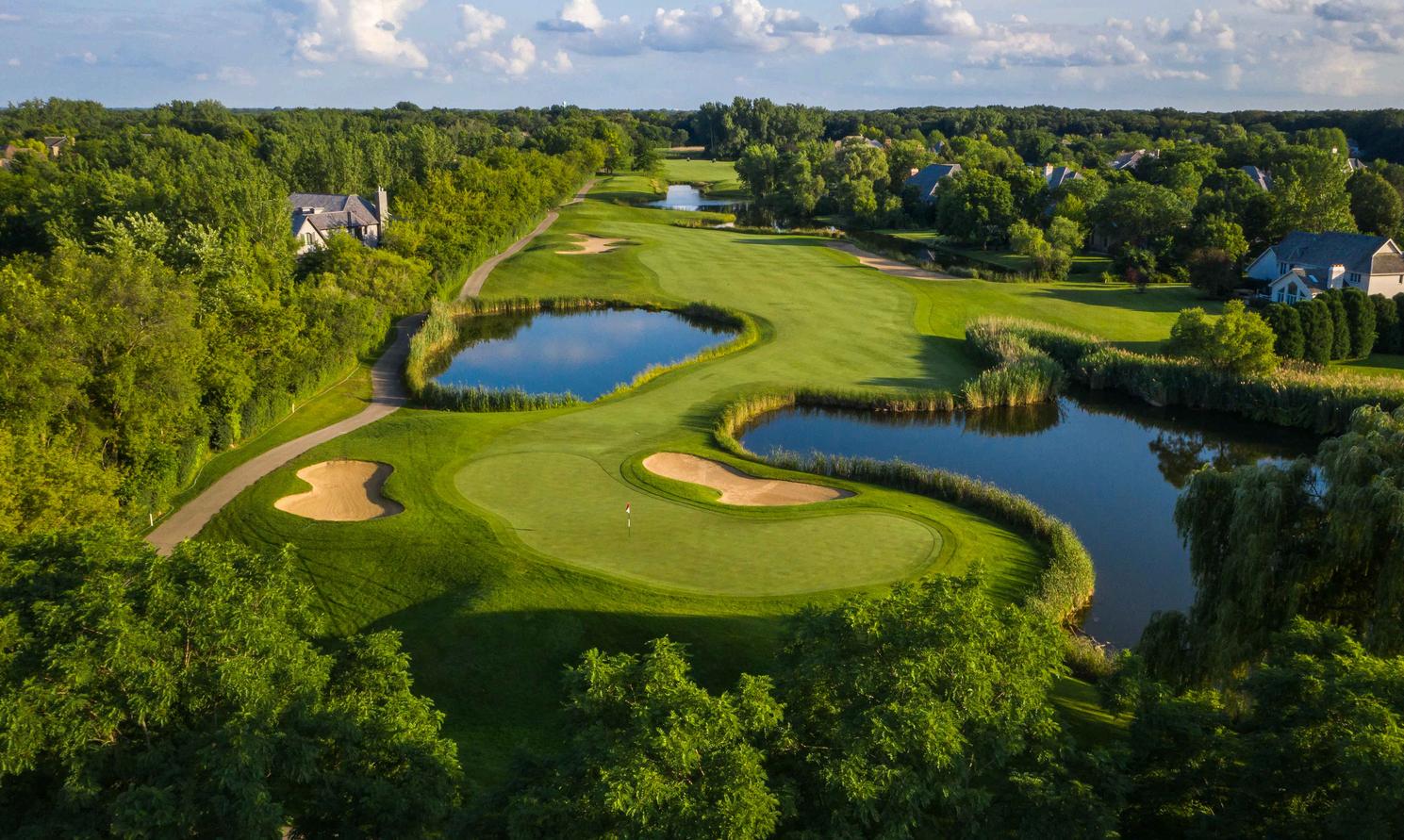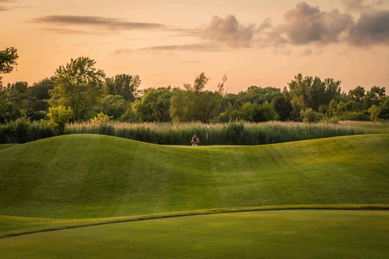 Combining three natural elements, the course was divided into three six-hole segments. Six were set in a heavily wooded area with mature oak trees, six in a designated prairie-wetlands conservancy, and six around nine ponds attracting native wildlife
