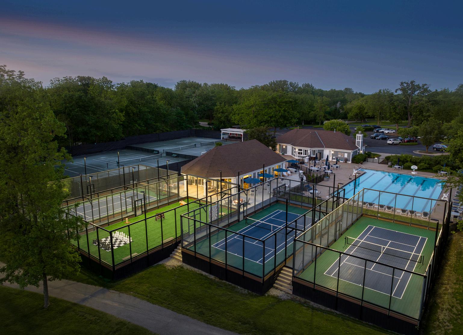 Grand Ballroom - The host of club traditions, Easter and Mother's Day Brunches, this 4,000 square foot room is perfect as the host for wedding receptions, and other large parties Our Grand Ballroom connects to an adjacent pre-function room, & Private Veranda overlooking the eighteenth green Racquet Complex – Four Har-Tru Clay tennis courts, Two Pickleball Courts & Four Platform Tennis Courts, Viewing Deck, Locker Rooms, Tennis Shop, and a Year-Round Social House with dining and a winter platorm tennis warming area