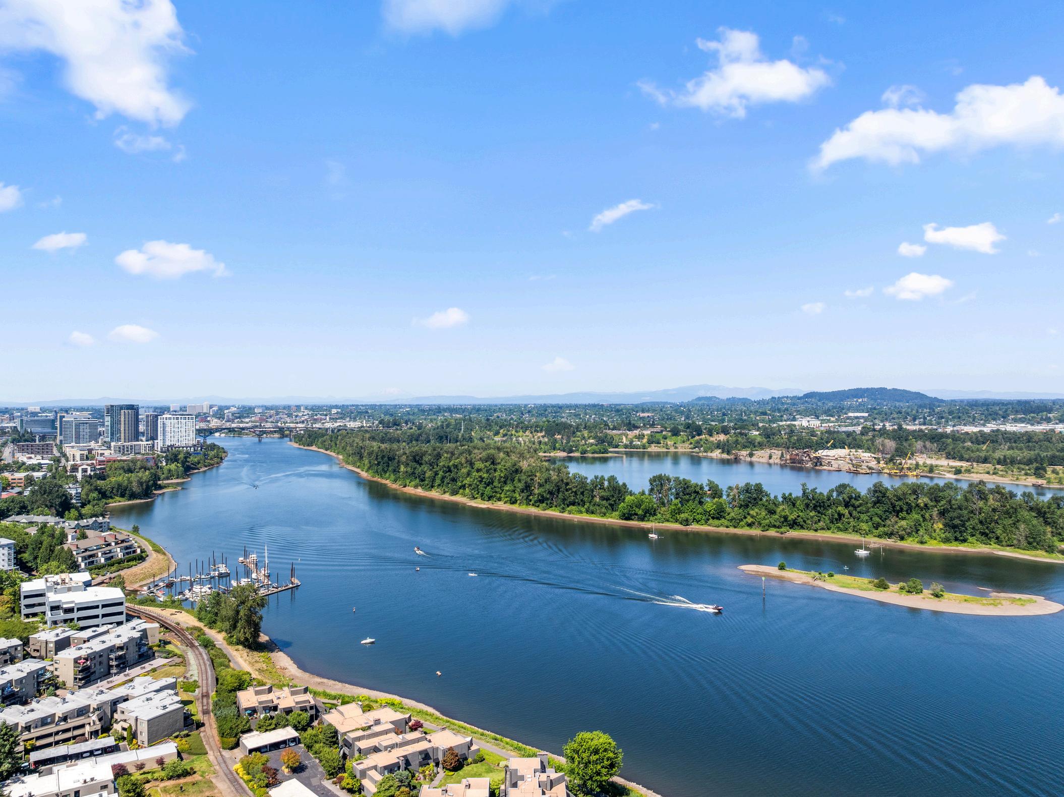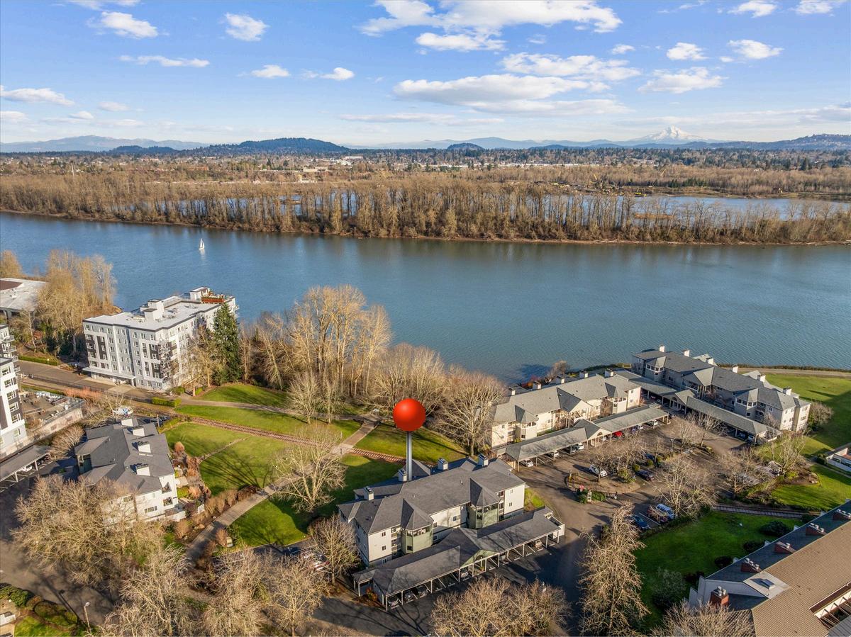 This 2 bedroom, 2 bathroom John’s Landing condo offers beautiful views of the Willamette River and trolley tracks. The spacious living room features a woodburning fireplace and opens directly onto a balcony overlooking the river and walking path. The kitchen has warm tones and a cozy feel, while the primary suite includes a large view window and direct access to the balcony. The second bedroom works well as a guest room, office, or media space Two assigned parking spaces, including one covered, provide added convenience. Enjoy a location close to coffee shops, restaurants, bars, and boutique shops, with easy access to Lake Oswego, OHSU, and downtown Portland for city living without the traffic. This condo is ideal for full-time living or as an income property.