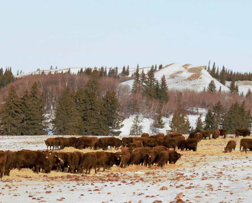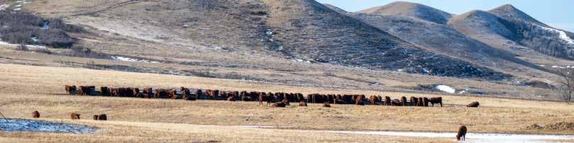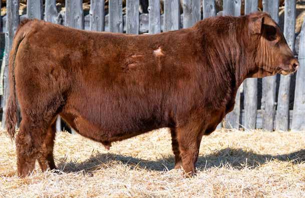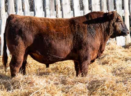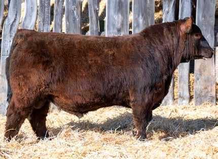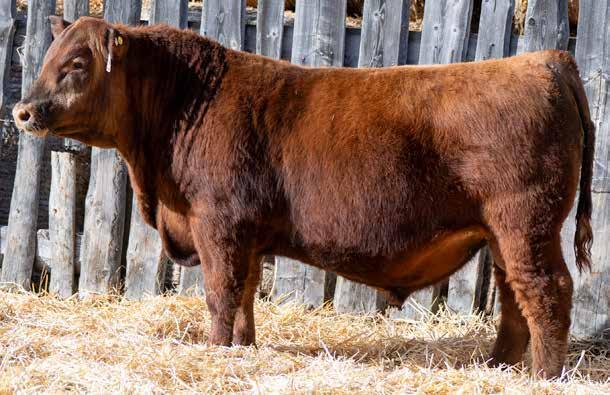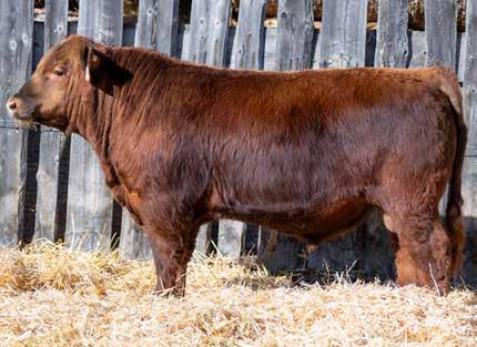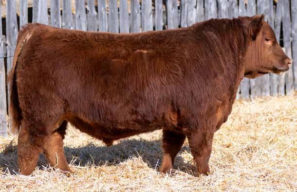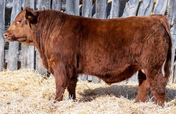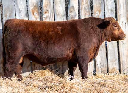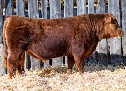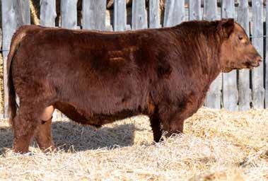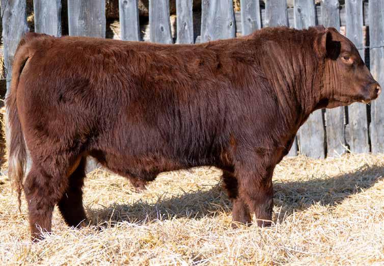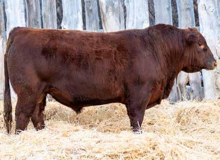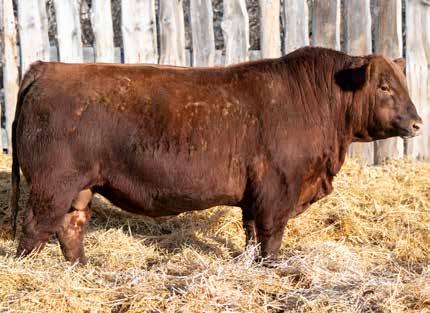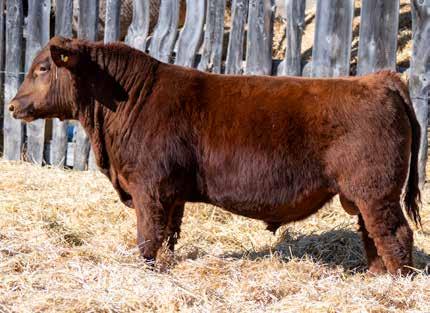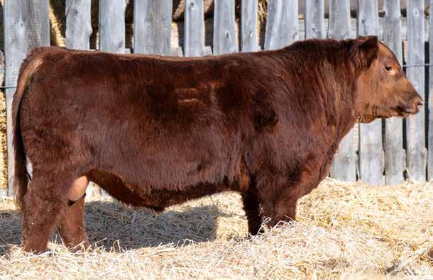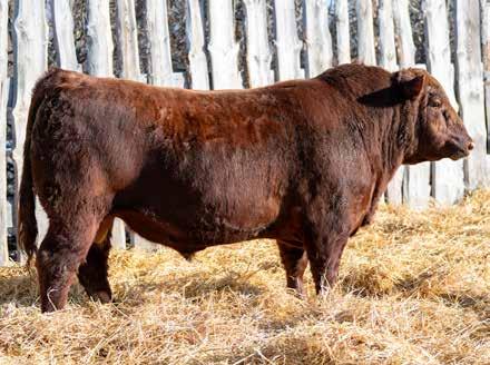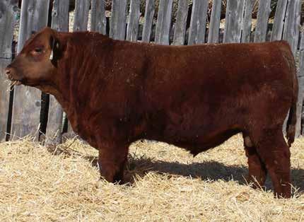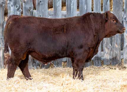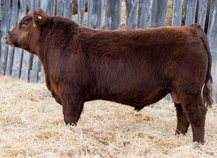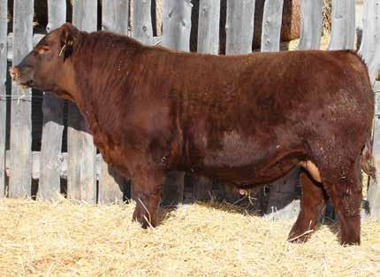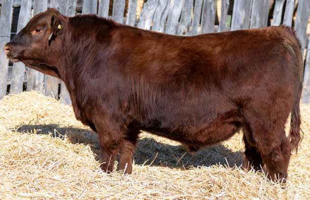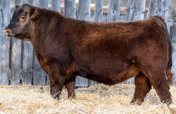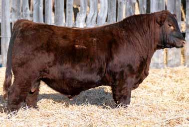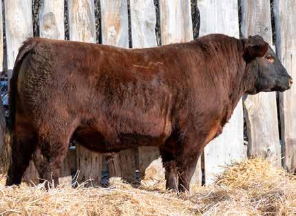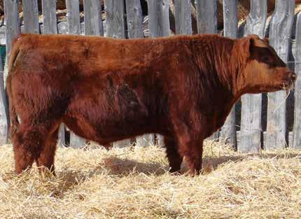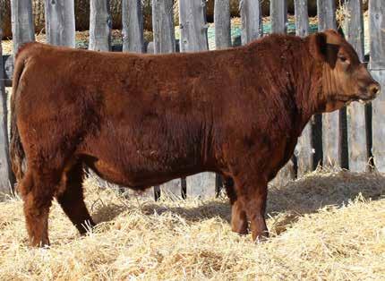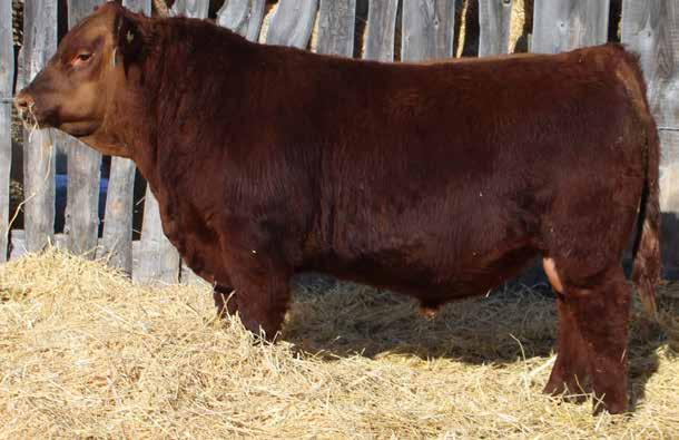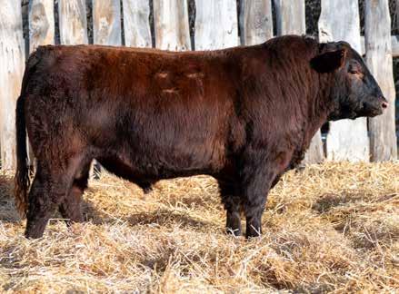I believe this is the best set of bulls we have ever had. With the 9 inches of rain in July, our weaning weights were the highest they have ever been and with a mild winter, the bulls averaged 3.1 lbs./day. The twoyearold bulls have been out on two quarters of land, so they have been getting their exercise, we just brought them in Feb.13th. All of these bulls will be semen tested and ready to go to work in anyone’s herd.