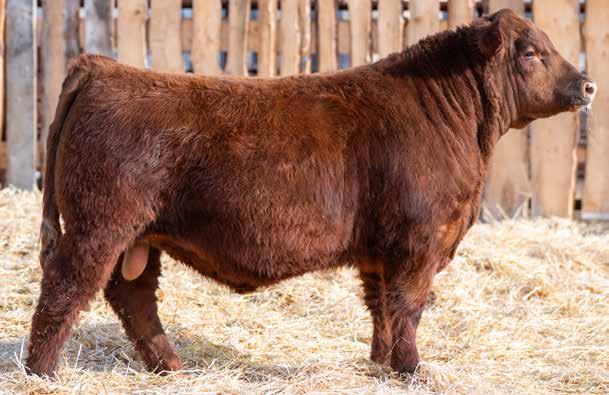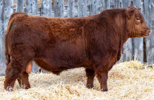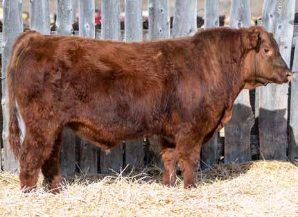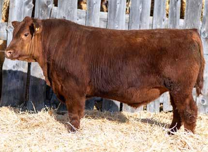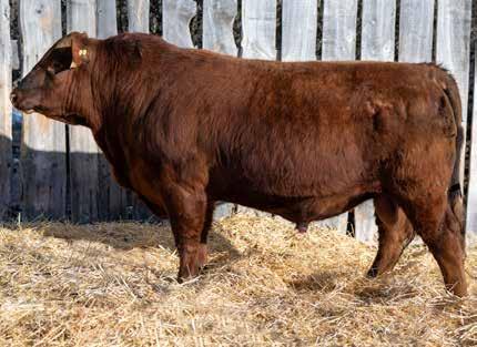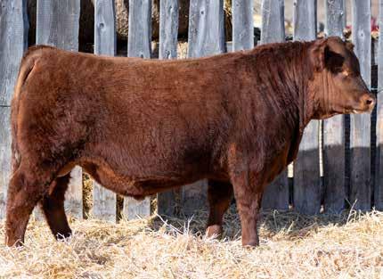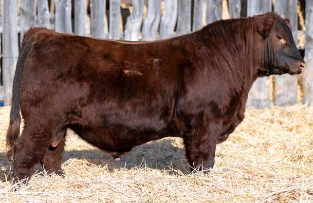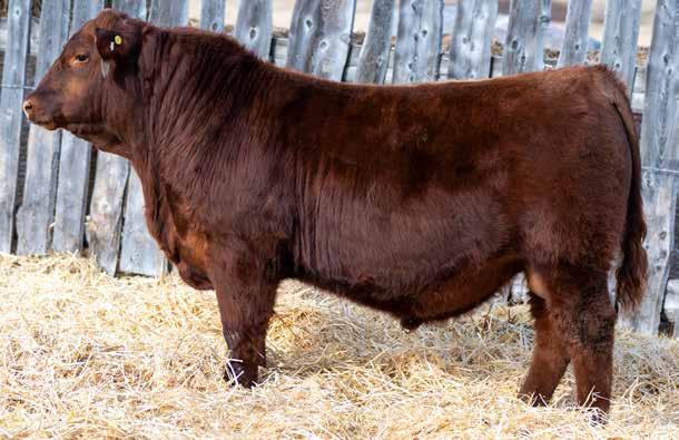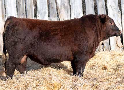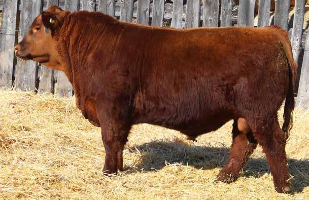 We used this bull on our commercial heifers last year. He has style and is a nice dark cherry red colour. He comes from a solid McLovin cow with longevity and a good disposition.