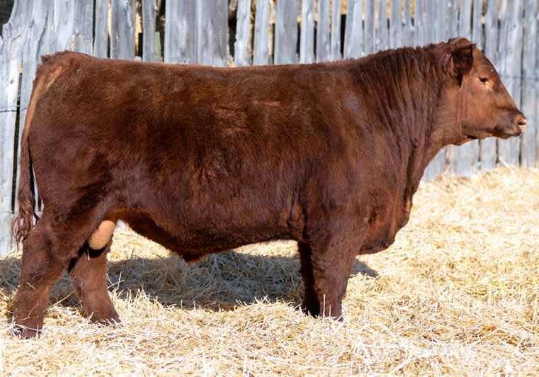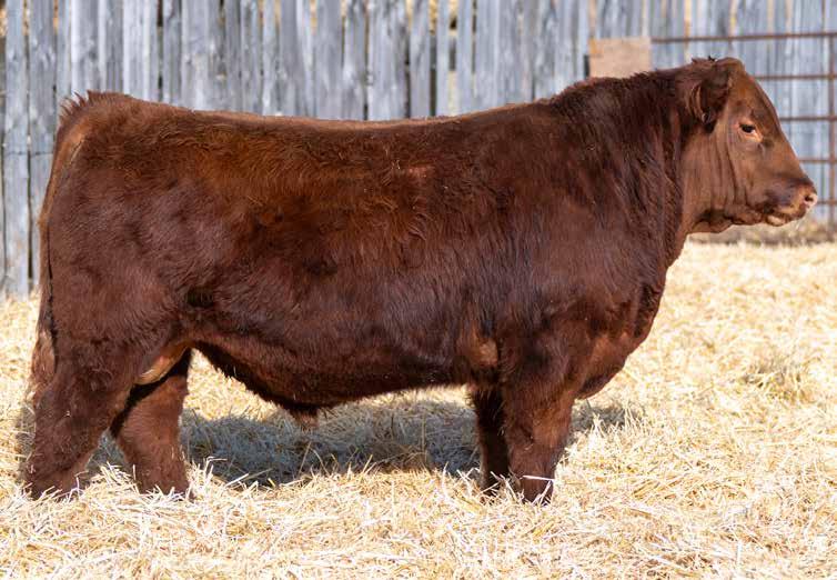 Here is a long bull out of a Joker heifer. He has power, muscle and a good foot under him. He should add pounds to your calves. Weaning index 113.