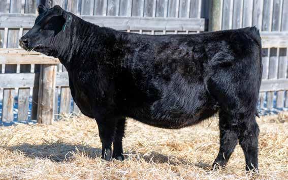 WWF Warrior Blackbird 52N has length of body, lots of muscle mass and it extremely well balanced when looking at her on a profile. These Walkerbrae Warrior daughters are so good you can pick them out in the pasture and WW 52N displays Warrior daughters perfectly! She had a maternal two year old brother sell in last year sale to Mastad Ranch at McCord.