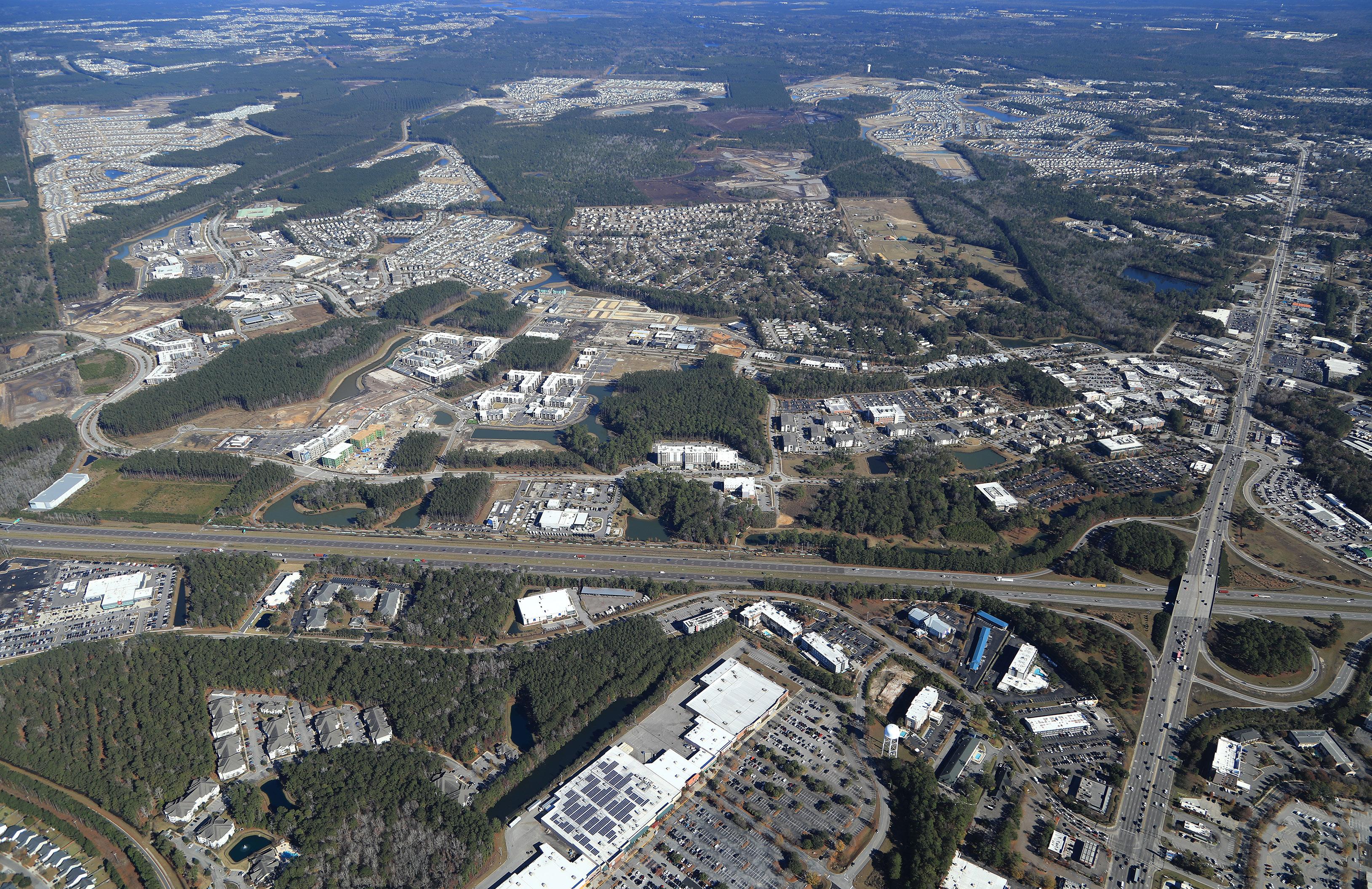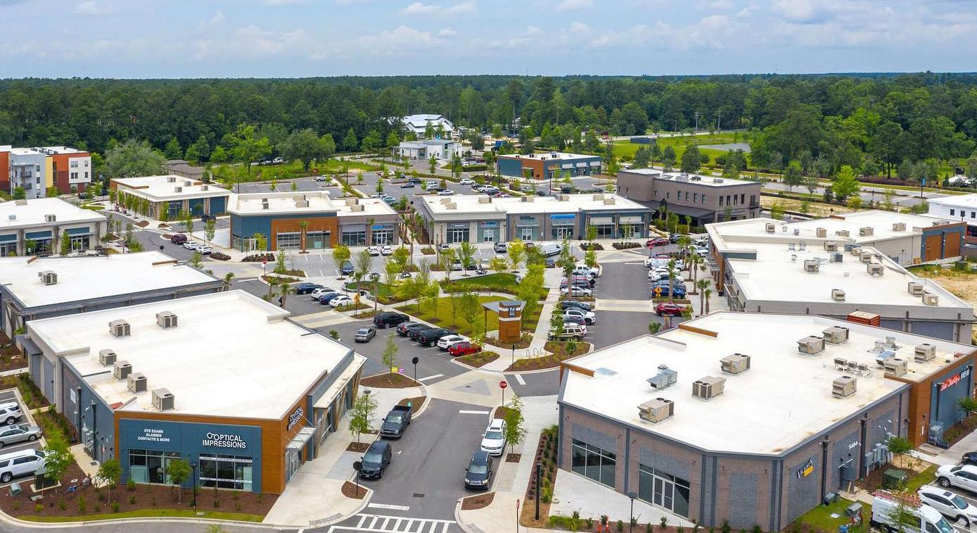 Nexton is designed to live and work like a town. It mixes together apartments, entertainment, homes, hotels, offices, parks, restaurants, shops, and schools. Tying everything together with a network of trails and pathways.