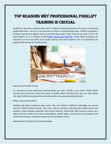 In today’s fast-paced industrial and logistics sectors, the importance of properly trained forklift operators cannot be overstated. Whether you're running a small warehouse or managing a large distribution center, investing in Forklift Training is essential for improving workplace safety, reducing accidents, and increasing overall efficiency.