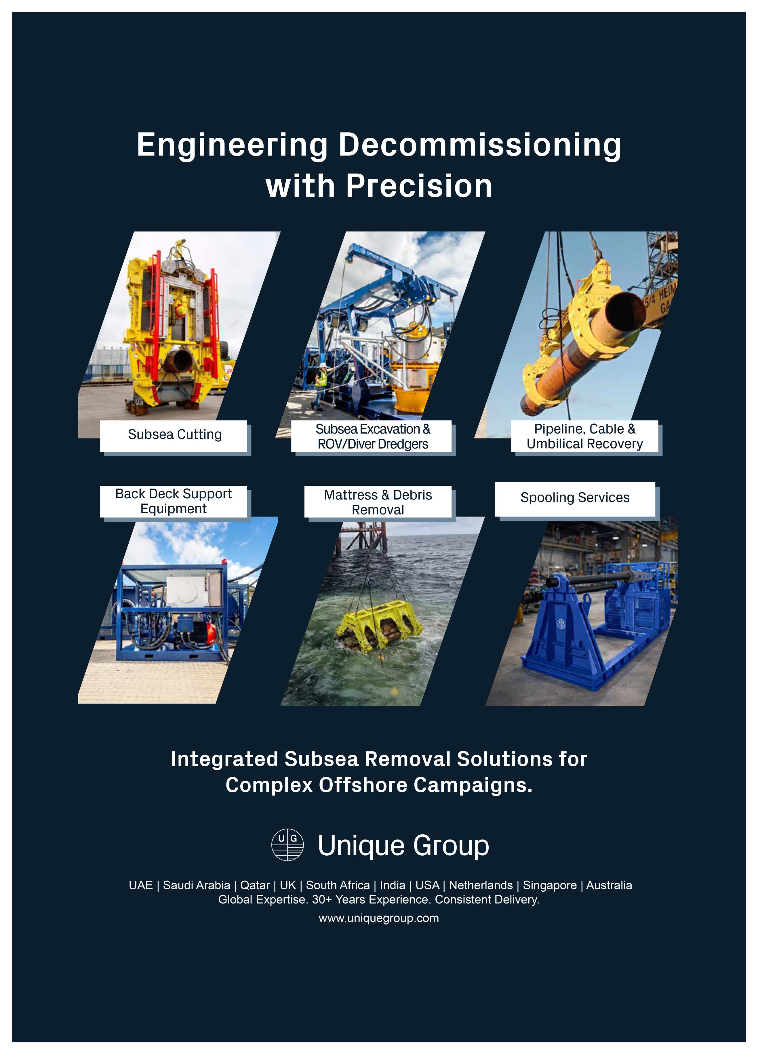Denne egenskapen styrkes av vårt globale nettverk av teknologi- og tjenestebaser, inkludert Aberdeen og Great Yarmouth i Storbritannia, Akrehamn i Norge, Houston i USA, Perth i Australia, Singapore, og UAE som representerer vår siste ekspansjon til Midtøsten. Disse strategisk plasserte knutepunktene gjør det mulig for oss å støtte offshore-prosjekter uansett hvor de opererer, og gir mulighet for rask mobilisering, lokal teknisk ekspertise og ensartede servicestandarder på tvers av regioner.