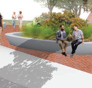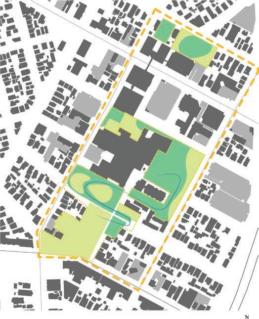address the lack of permeability on site because it’s filled with parking lots. included Perme able Paving, Rain Gardens, and Infiltration Basins.