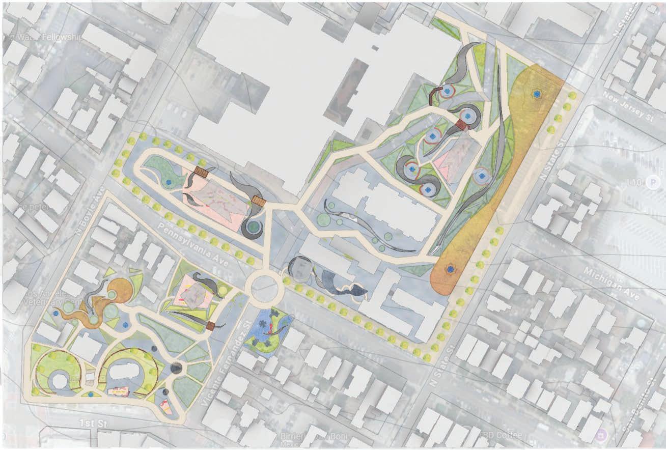 Mariachi Plaza has culturally deep ties with the community with the hospital nearby being a major employer of the area. The community is sensitive to development because of history of gentrification. I wanted to enhance the identity was creating a gradient of open plaza programing with gardens. This later went further into expanding the landform language throughout the site through their work.