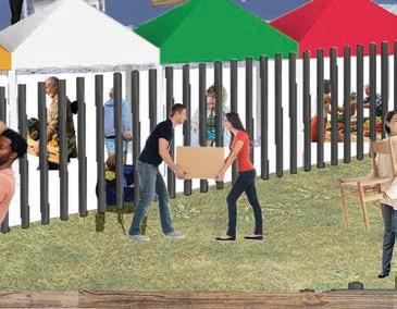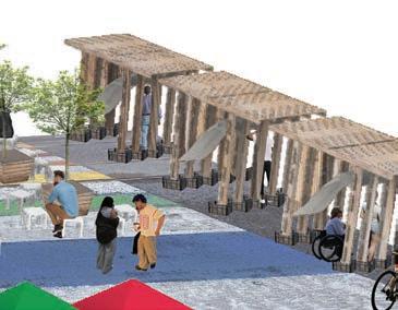 After the Olympics, Plants from the planter boxes will be planted along the street and in other spaces, such as parks. The wooden pallets are converted to mulch. Plastic crates used for the structure’s footing can be returned for reuse.