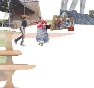 I abstracted the experience of mariachi music using charcoal sketches. I extracted the linework into Rhino to create equipment like shade structures, play structures, fountains, and signage.