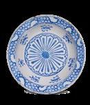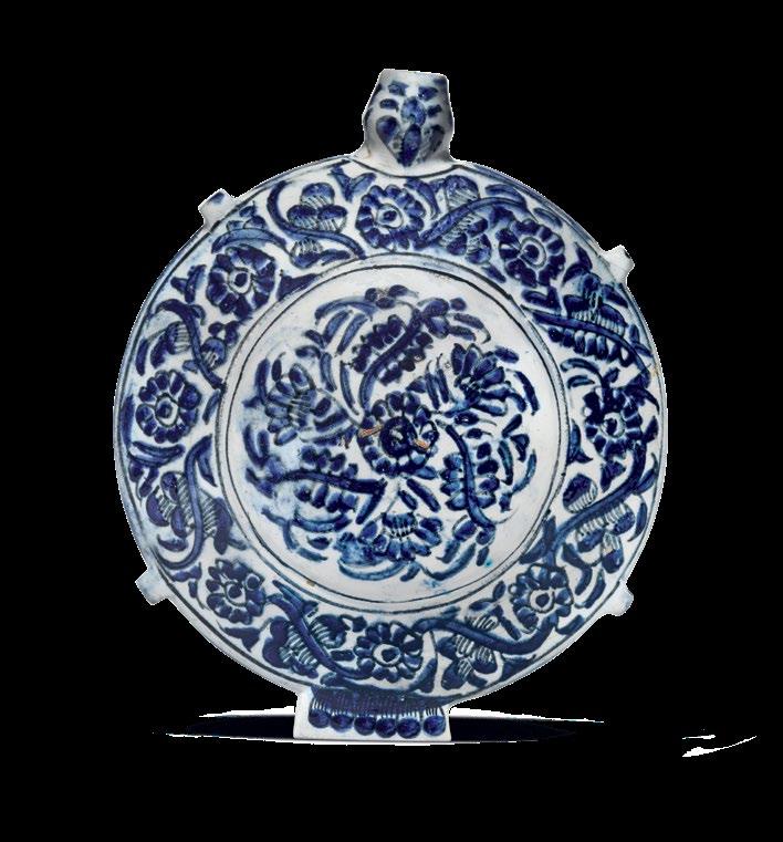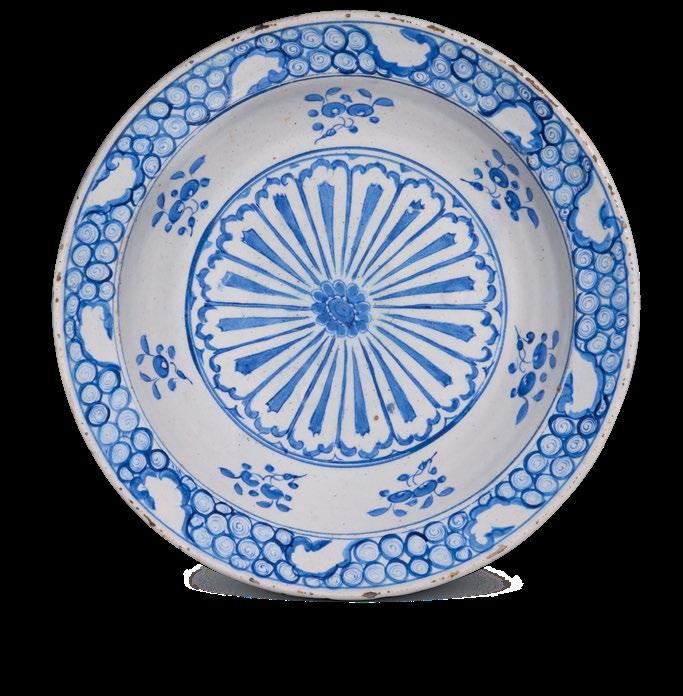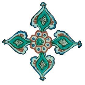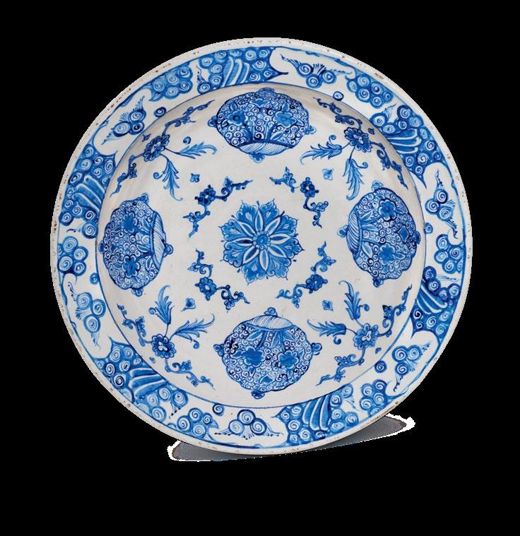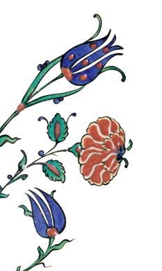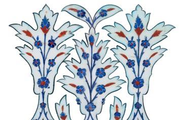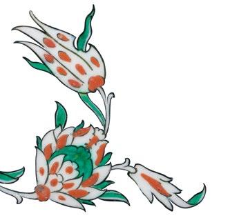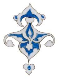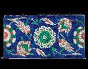 The fish-scale design is one of the major decorative elements, with cross-cultural background, in the repertoire of Iznik ceramics. It appears both in the West and the East as a popular motif. In the West, for example, it is found on the rim of Italian Majolica dishes from the mid-16th century. Please see, Frederick Hitzel & Mireille Jacotin, Iznik: l’aventure d’une collection, Paris, 2005, p. 71. In the East, it appears on Chinese ceramics produced under the Yuan dynasty (12711368) such as the plate in the Topkapi Palace Museum, Istanbul. Please see, Morris Rossabi, Genghis Khan and the Mongol Empire, Washington D.C., 2009, Fig. 30.8, p. 228.